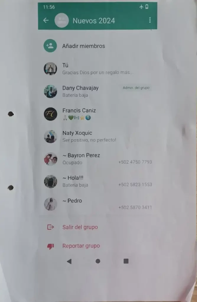 Moisés también cruza conversaciones en un grupo de WhatsApp llamado “Nuevos 2024”, del cual es parte él y otras seis personas, Chavajay y otras cinco personas que serían representantes de otros grupos de la sociedad civil, entre ellos Francis Caniz, quien aparece en fotografías junto con Rodríguez (aparentemente son amigos) y con el expresidente Alejandro Giammattei.